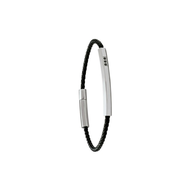 Bracelet Jourdan Bijoux Instinct en cuir, acier et diamants